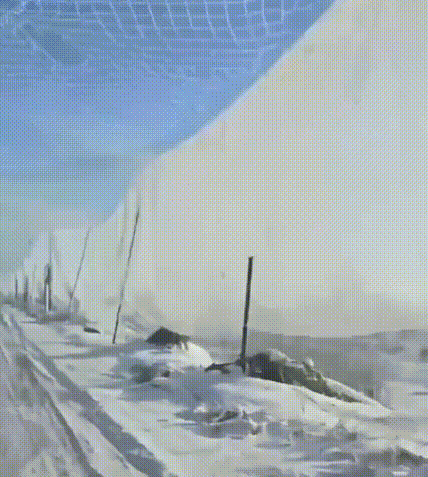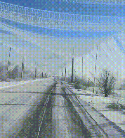 俄罗斯使用渔网将整个道路两侧,顶端全部罩了起来,形成了一条“封闭式通道”。